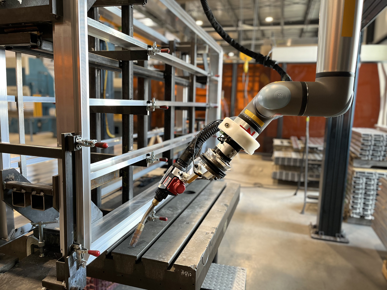 Automating with a custom cobot welding cell presented the perfect solution to this challenge. However, finding the right custom solution for an operation this scale was difficult. Generic, small weld tables weren’t a good fit and other custom integration solutions risked inflating the costs.