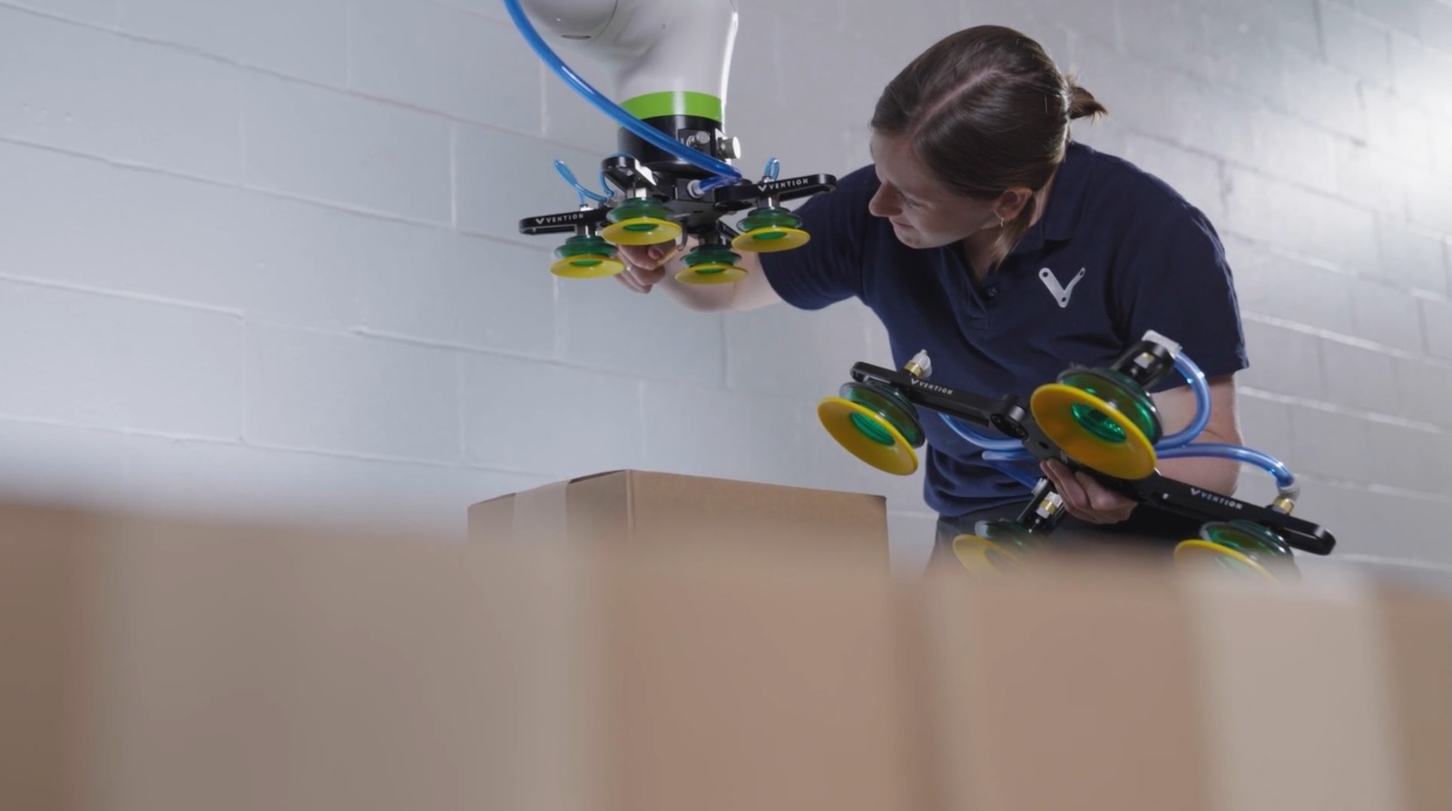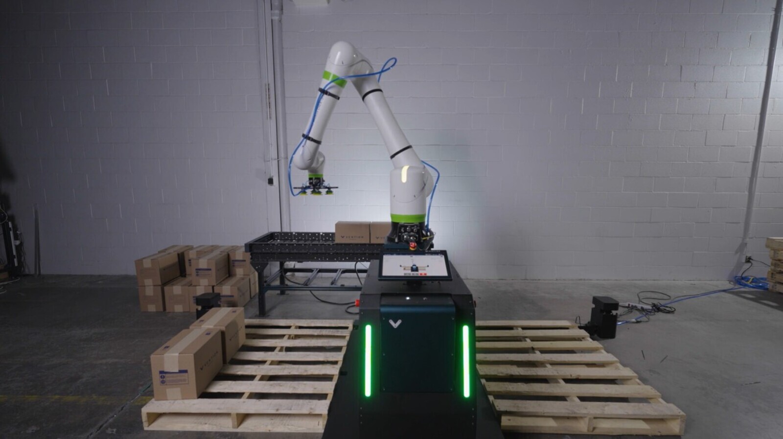To address these challenges, the company established a dedicated automation task force and partnered with Vention to develop a multi-year modernization roadmap. The project utilized Vention’s turnkey services, beginning with virtual design in MachineBuilder to create modular solutions that could be standardized across multiple sites. The implementation focused on Modular Cobot Palletizing and Specialized Tray Handling to increase operational flexibility. Vention supported the entire lifecycle, providing programming, on-site deployment, and specialized training to ensure the plant teams were ready for 24/7 automation shifts.