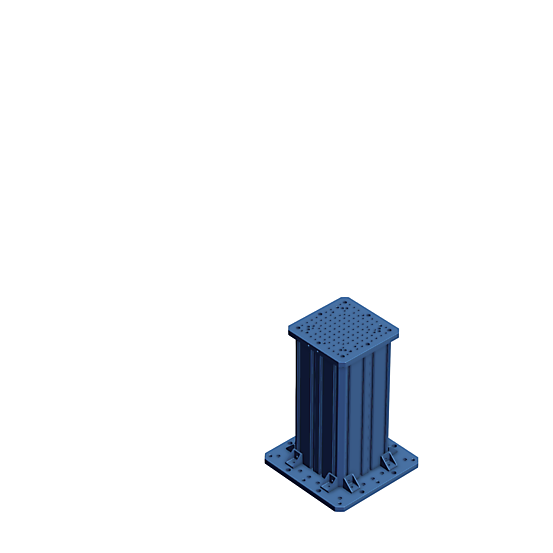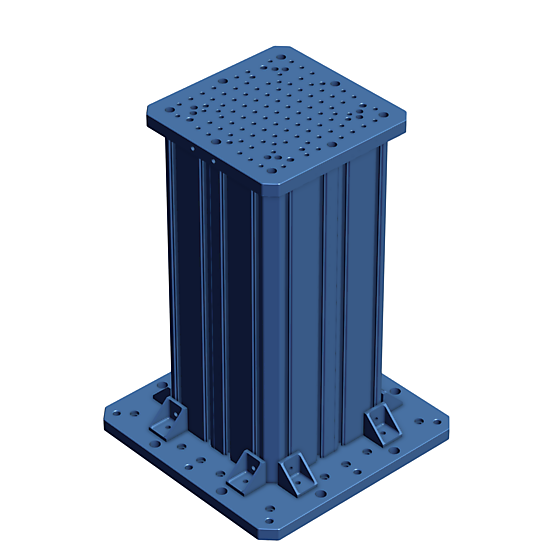 Vention robotic arm base compatible with Universal Robots URe series and Fanuc CRX designed with t-slot aluminum extrusions and leveling caster wheels, with center point for the robot base plate at a 585mm height. Anchoring required based on robot used, loads and application. Additional mounting plate might be required. Please contact our technical team in case of support needed. Robot not included.