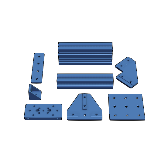 Vention's evaluation kit is intended to provide a quick, first-hand experience of the quality and ease-of-use of Vention's modular parts. The kit comes with samples of structural parts of each category offered by Vention.