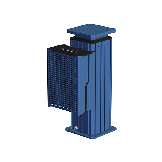 Vention robotic arm telescopic base compatible with Universal Robots URe series and Fanuc CRX designed with t-slot aluminum extrusions and leveling caster wheels, with center point for the robot base plate at a robot base height ranging from 830mm to 1700mm. Anchoring required based on robot used, loads and application. Please contact our technical team in case of support needed. Robot not included.
