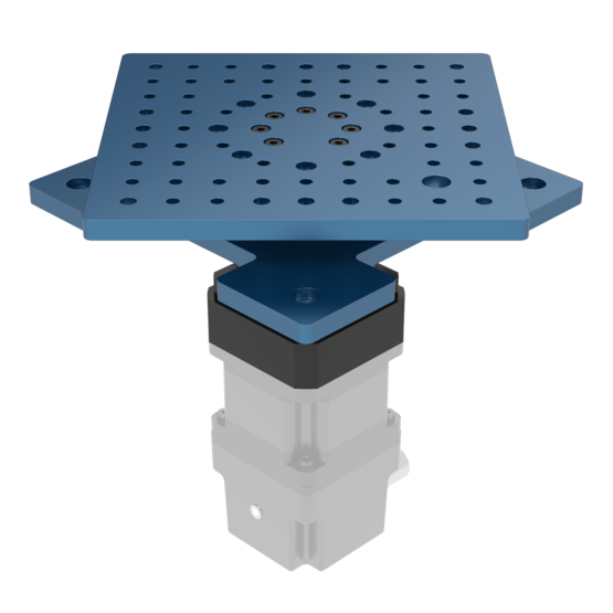 Vention's Heavy Duty Rotary Actuator achieves 360 degrees of motion without limitations, incorporating a 20:1 reduction ratio and a rated backlash of 9 arcmin to provide higher torque and precision. Both the top and bottom plates are dimensioned for direct integration with Vention extrusions, and the top plate rotates in the same direction as the output shaft. The gearbox is IP65 rated, supporting use in environments where protection against dust and water ingress is required, and the actuator is fully compatible with Vention's NEMA 34 stepper motors.