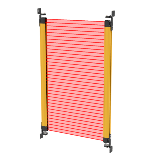 The Keyence safety light curtain is composed of a sender/receiver pair of 36 beam axes offering hand protection resolution. This product requires 24 VDC, with an operating distance of 0.2 to 15m, with a category 4 safety rating and IP65/IP67. Also includes the brackets to mount the light curtain on a Vention structure.