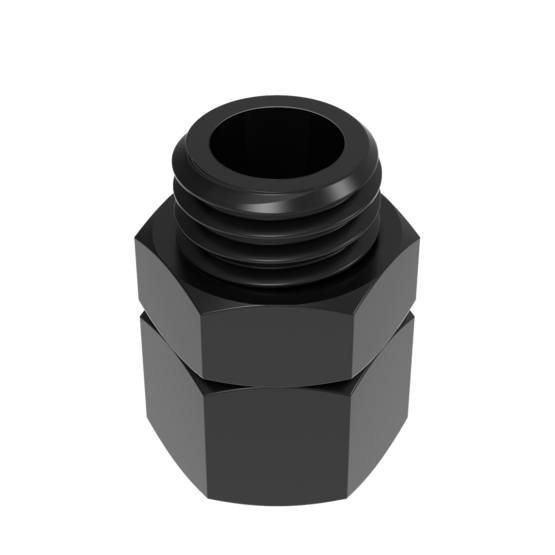 This suction cup bulkhead is designed for use with Vention's modular vacuum grippers. It features a G3/8" female thread on one end, allowing for easy attachment to suction cups, and a G1/4" female thread on the other for connection of 12mm tube adaptors.