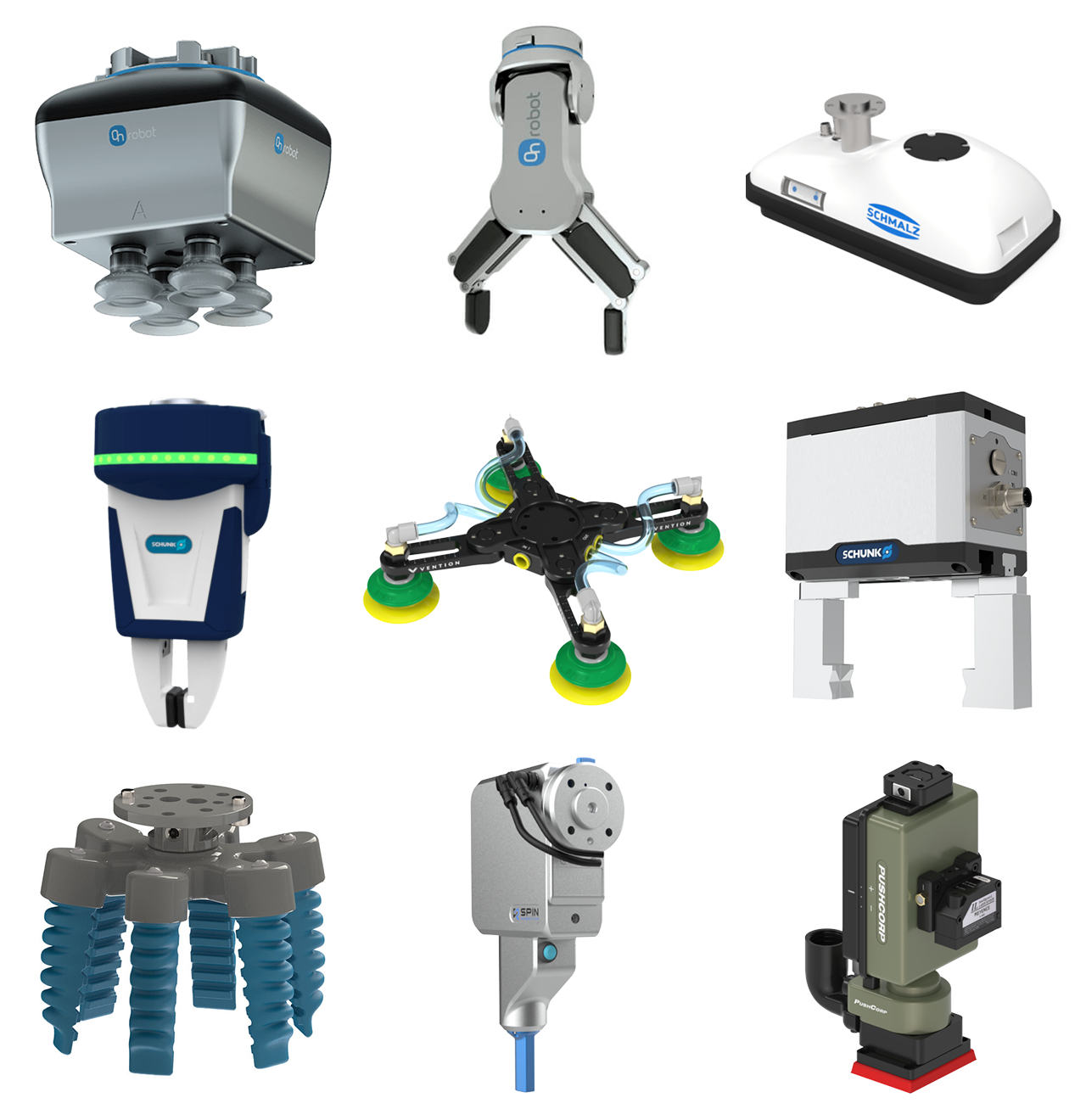 Add robot end-of-arm tools, safety devices and more with a library of 100+ modular components.