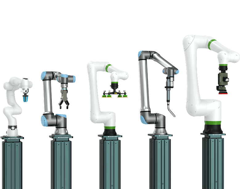 Increase the vertical reach of your cobot with telescopic lift columns or fixed pedestals.