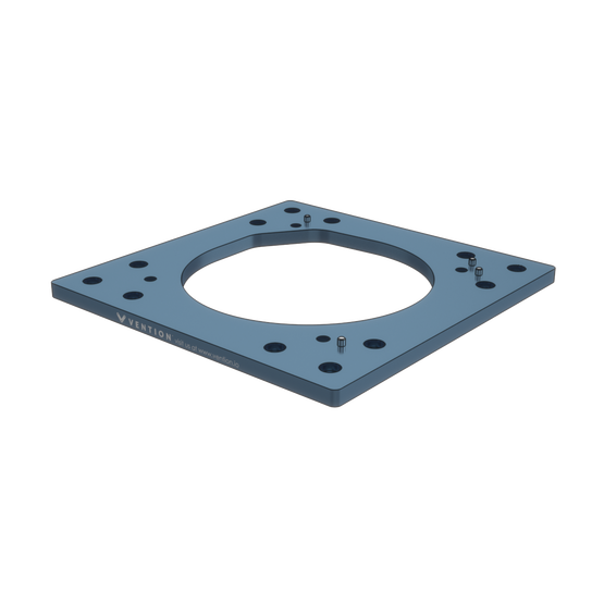 Vention's 200iD mounting plate enables fast and easy installation of a FANUC 200iD, 200iD/7, or 200iD/14 robot to any custom assembly. Note, the Fanuc 200iD/4 is not compatible with this mounting plate. The 4X robot mounting holes use M10 X 1.5 stainless steel helical inserts. Make sure you use all included fasteners in your applications. Outer dimensions are 270mm x 270mm.