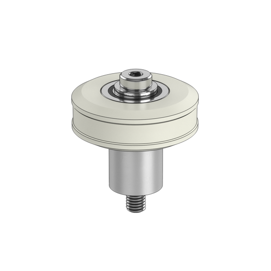 Self-positioning acetal roller wheel with 2x double-sealed bearings. Compatible with Vention 'V-shape' extrusion profiles.
